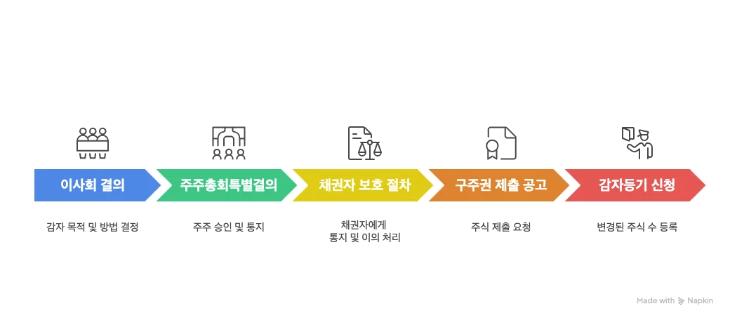 채권자 보호 절차가 끝나면, 이제 감자의 실질적 실행과 최종적인 등기가 진행됩니다.