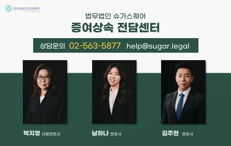 법무법인 슈가스퀘어는 증여·상속전문가와 세무 전문가가 협업하여 계약의 합법성과 세무 효율성을 동시에 보장합니다. 그 결과, 의뢰인의 자산이 불필요한 세금 부담 없이 안전하게 관리되고 원하는 방식으로 승계되도록 최적화된 솔루션을 제공합니다.