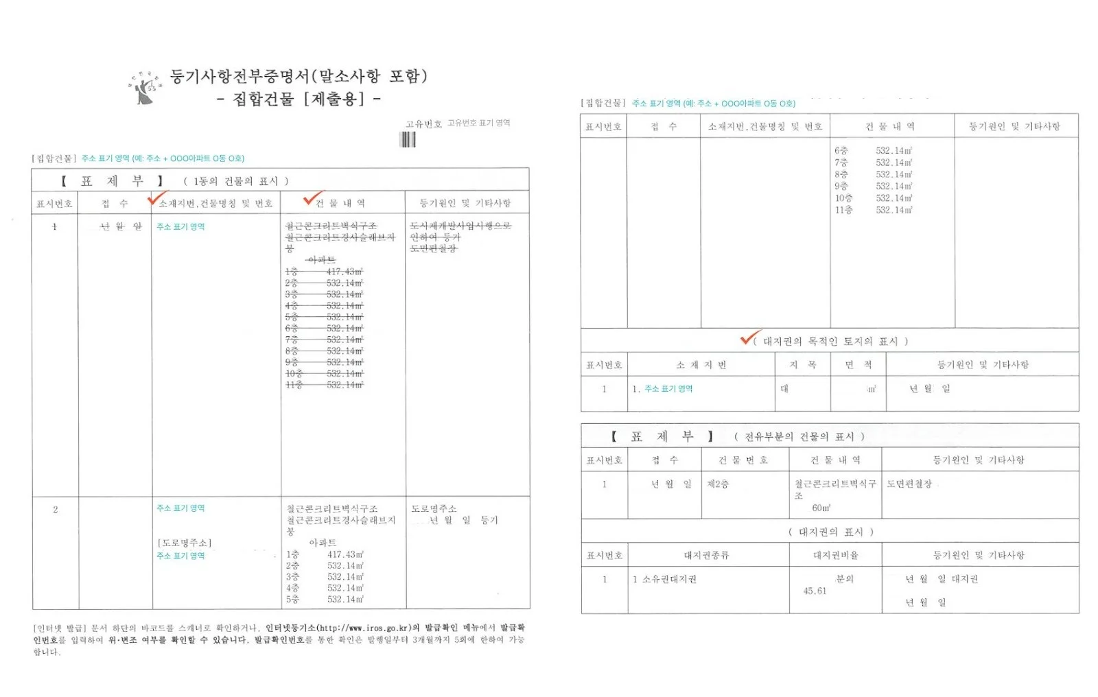 2. [표제부] 부동산의 신분증 : 기본 정보 일치여부 확인