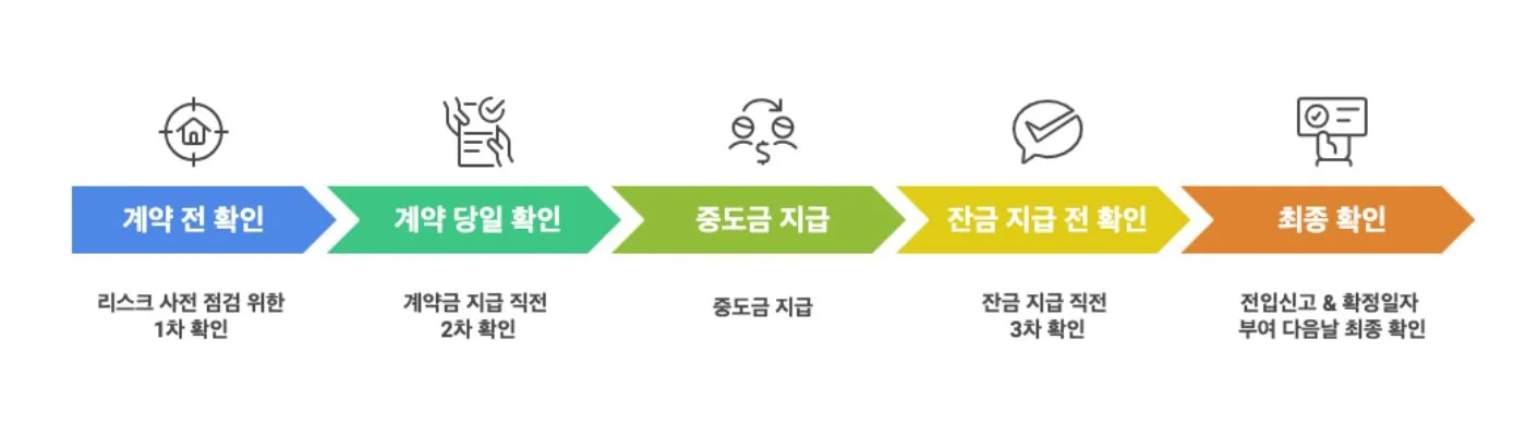 계약 당일 (계약금 지급 직전): 계약 체결 직전 2차 확인 (최초 확인 시점 이후 변동 여부 확인)