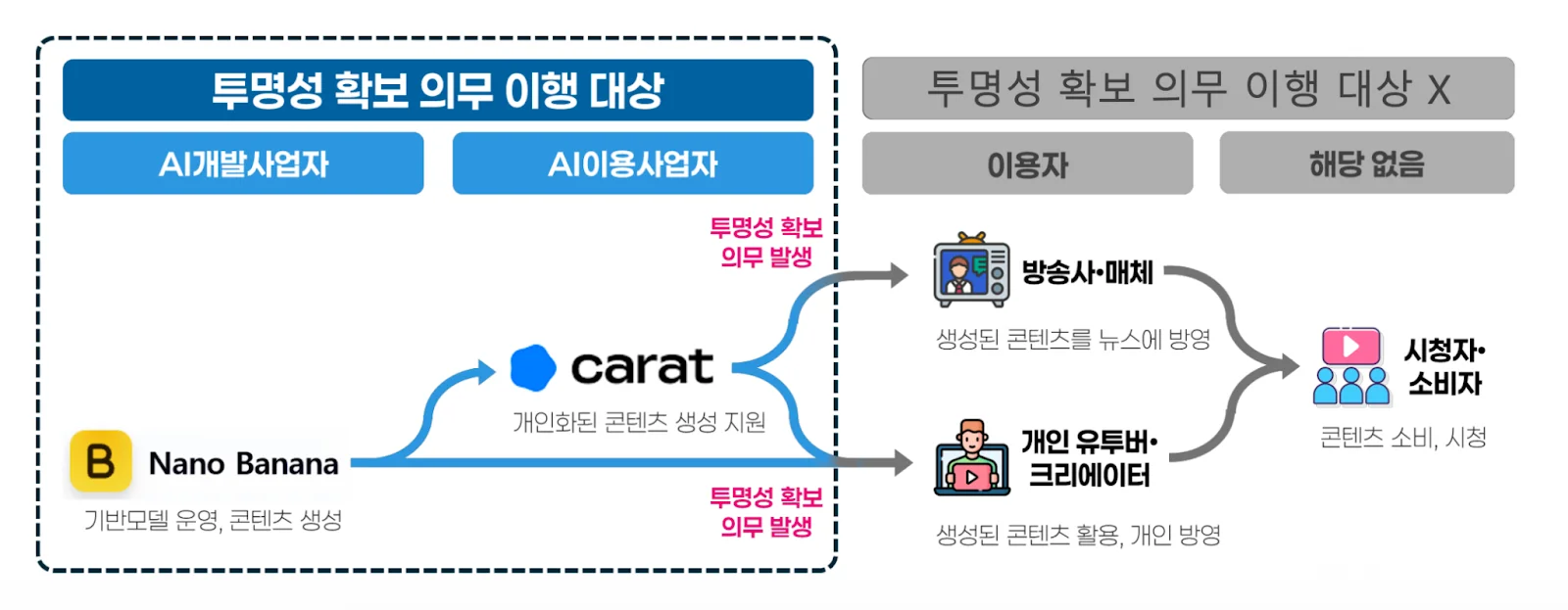 모든 AI에 적용되는 것이 아니라, 생성형 AI를 통해 콘텐츠를 제공하는 경우 중심으로 적용됩니다. 주요 내용은 다음과 같습니다.
