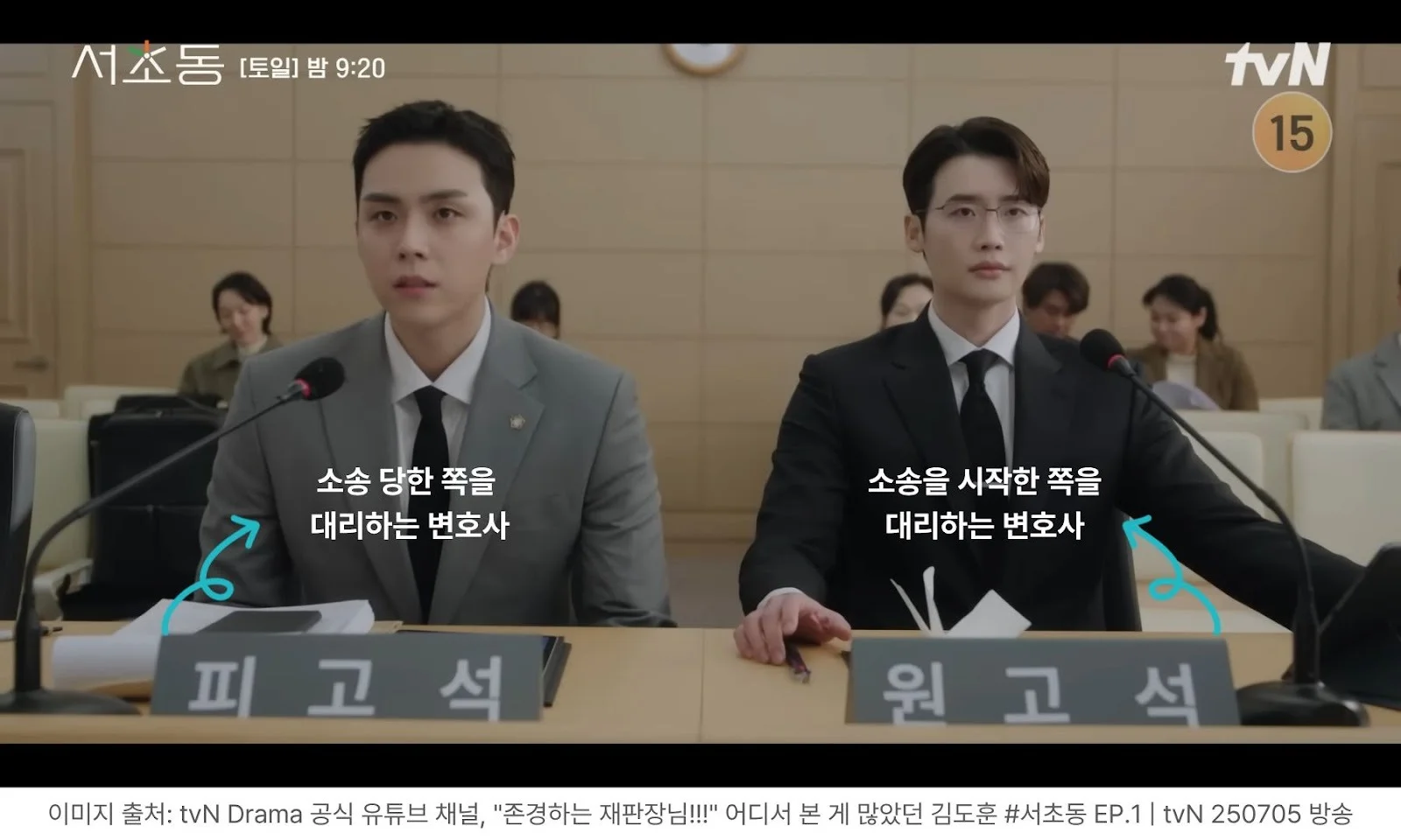 그러니까 드라마 <서초동> 에서 이종석 씨는 소송을 시작한 사람의 변호를 맡았고, 김도훈 씨는 소송을 당한 사람의 변호를 맡았기에 각각 원고, 피고 자리에 앉아 있는 것이죠. (그럼 진짜 원고, 피고는 어디있냐구요? 직접 나오지 않아도 되는 소송들이 있답니다~!)